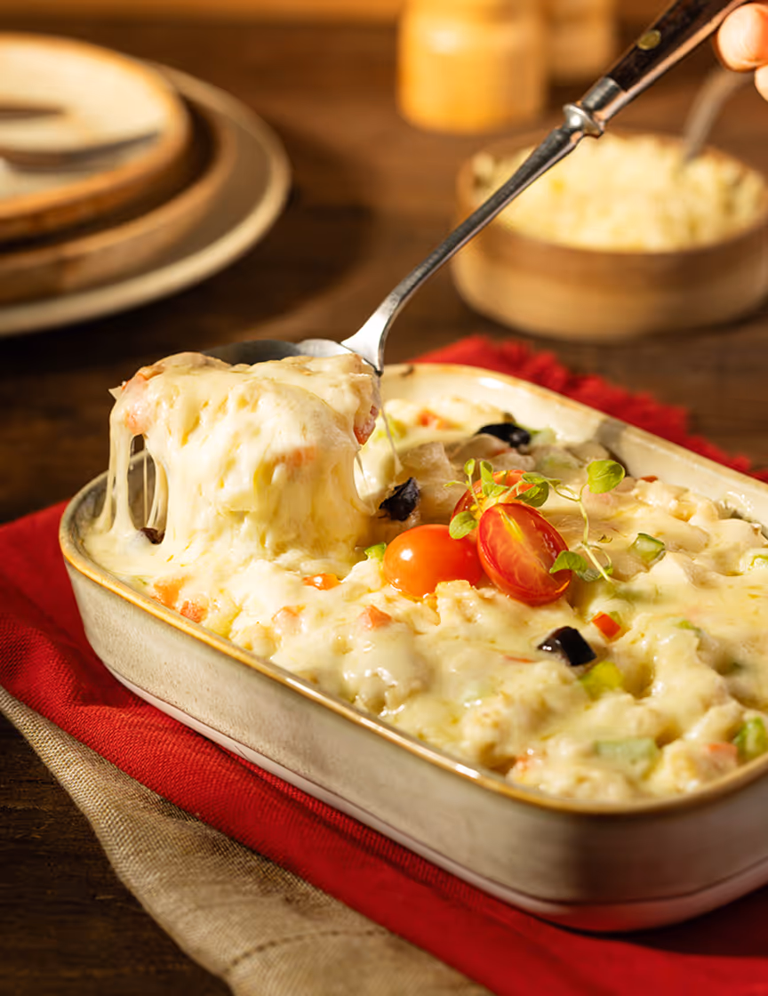 Bacio® é um queijo com alma italiana, feito para quem exige os melhores ingredientes. Produzido com leite de alta qualidade do Sul do Brasil, entrega sabor autêntico, textura ideal e performance incomparável.
